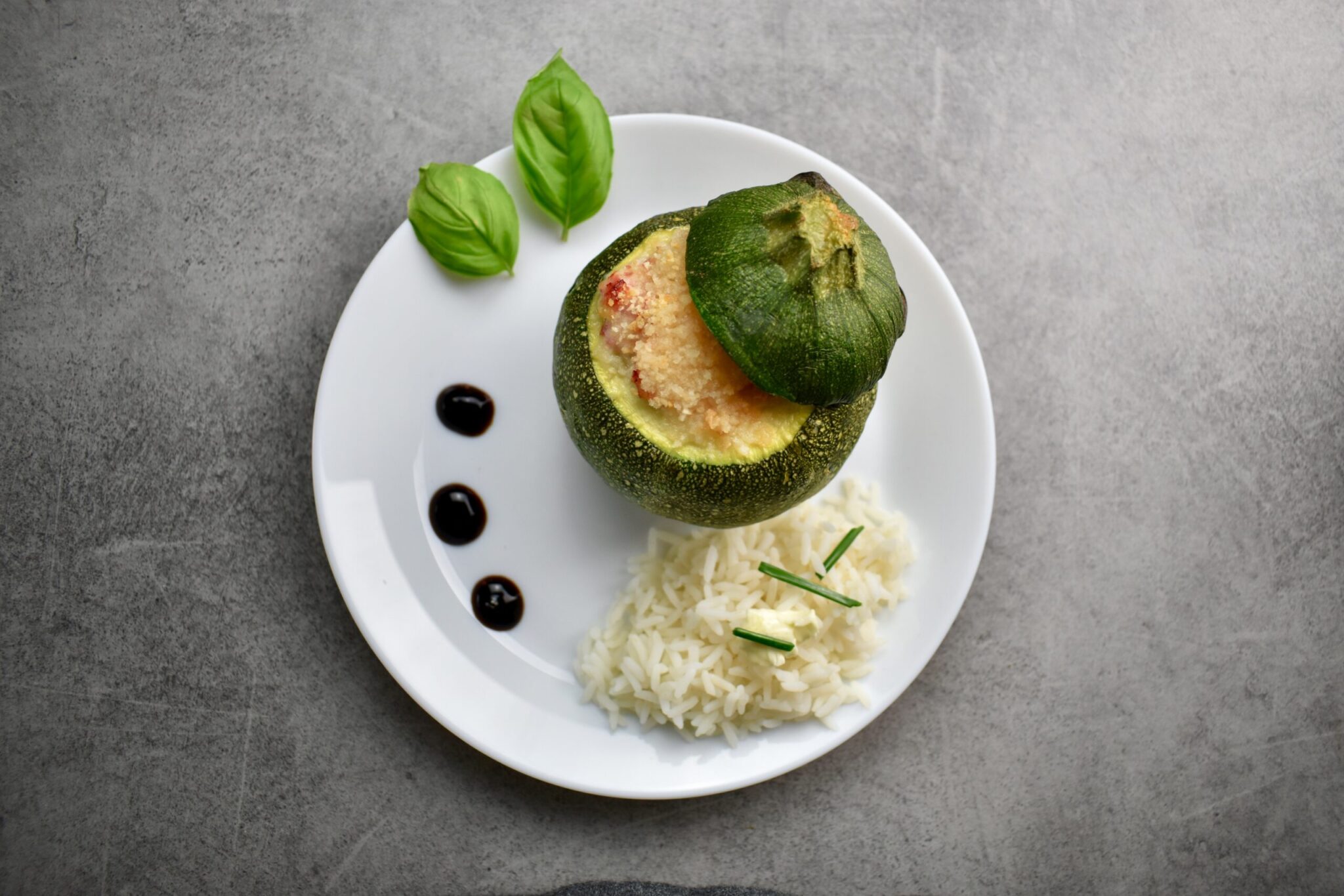 Les courgettes rondes sont idéales pour les farcir. Non seulement, elles présentent bien mais leur chair est aussi de meilleure tenue à la cuisson ce qui en fait un plat gourmand et appétissant. Pour varier les plaisirs, on a choisi une farce au jambon et au Kiri... donnez-nous votre avis en commentaires!!